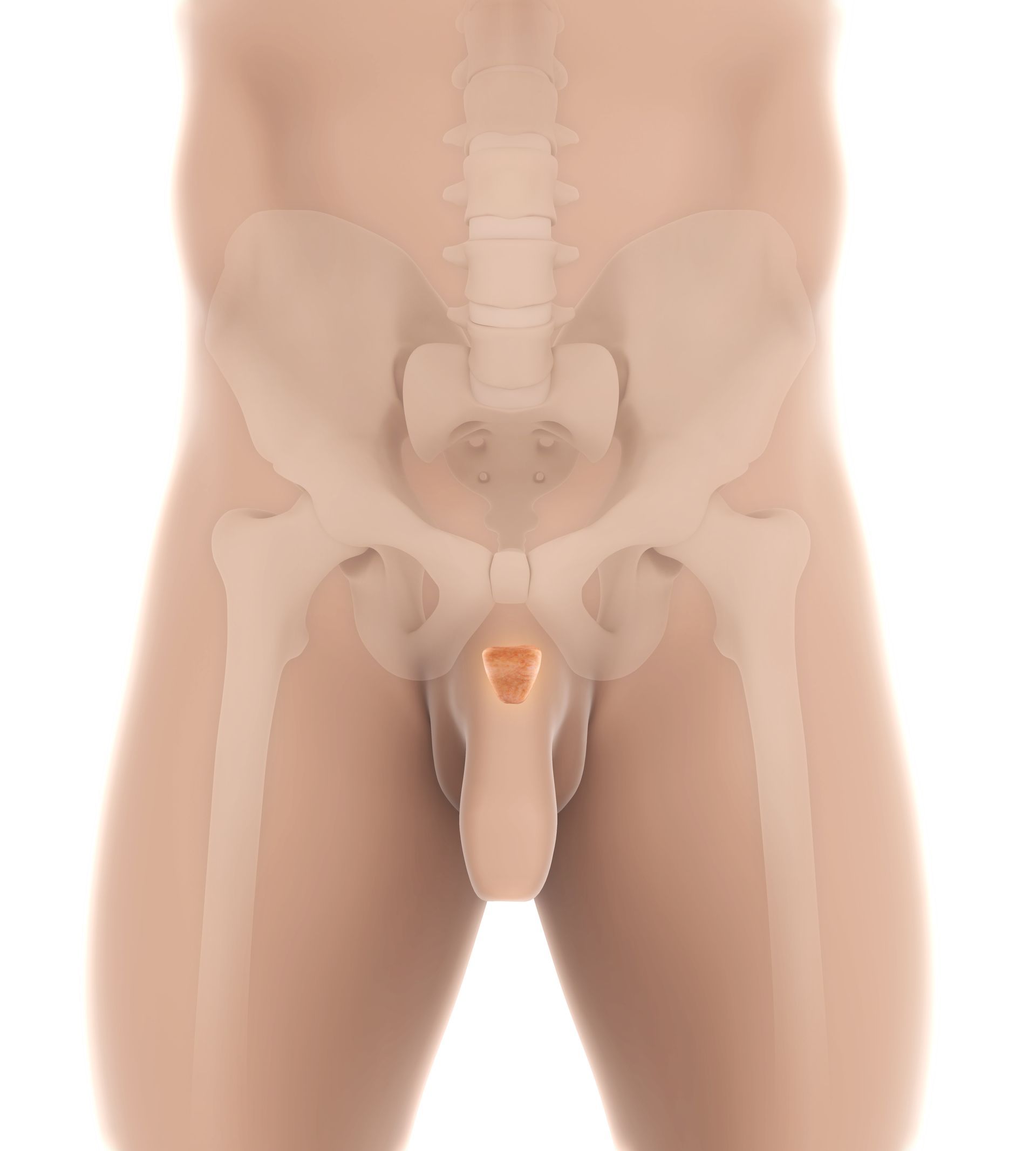 * The prostate is a small, walnut-shaped gland located beneath the bladder that produces seminal fluid.